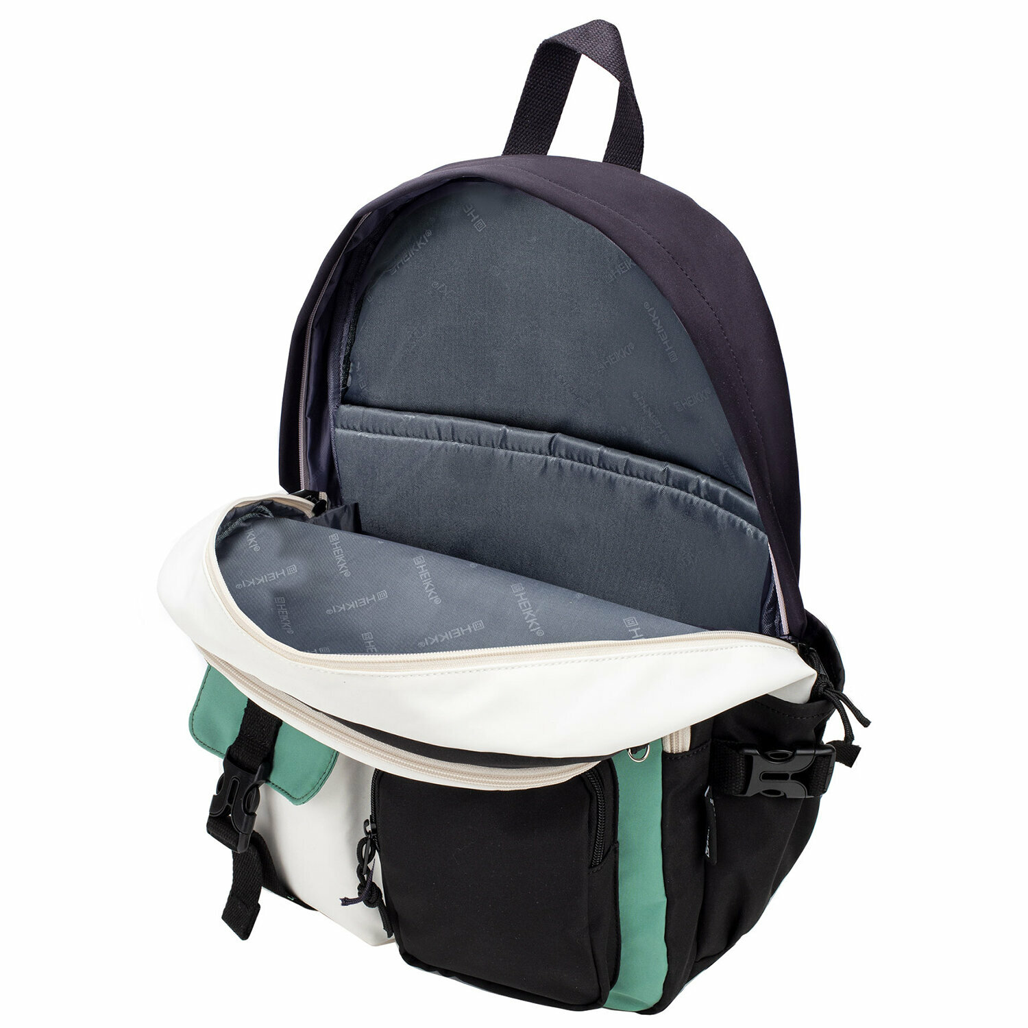 Купить Рюкзак HEIKKI BLOCKS (хейки) универсальный, 2 отделения, черный/бирюзовый/бежевый, 44х32х17 см, 272562, 272562