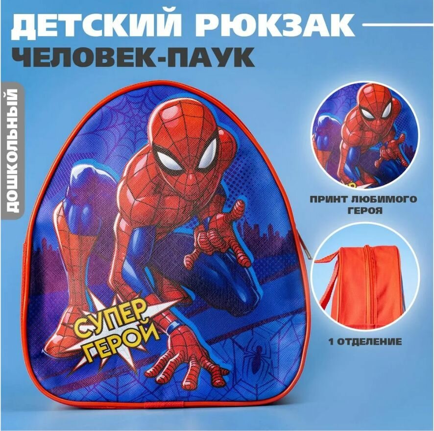 Рюкзак детский для мальчиков в садик Марвел Человек паук Супер герой, дошкольный интересное: