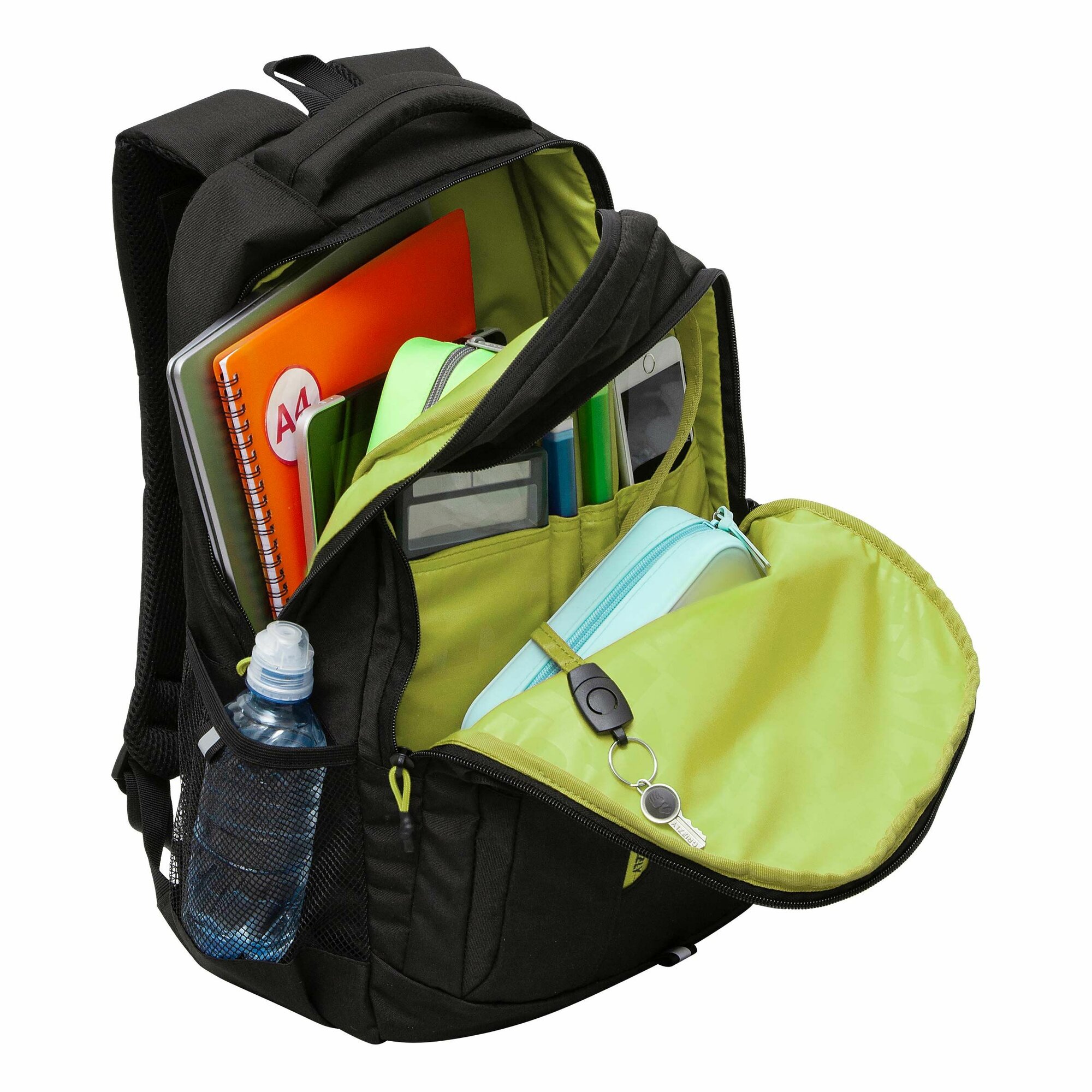 Школьный рюкзак с эргономичной спинкой GRIZZLY RU-436-2/2 черный - салатовый, 2 отделения, 832грамм, 47x32x17см