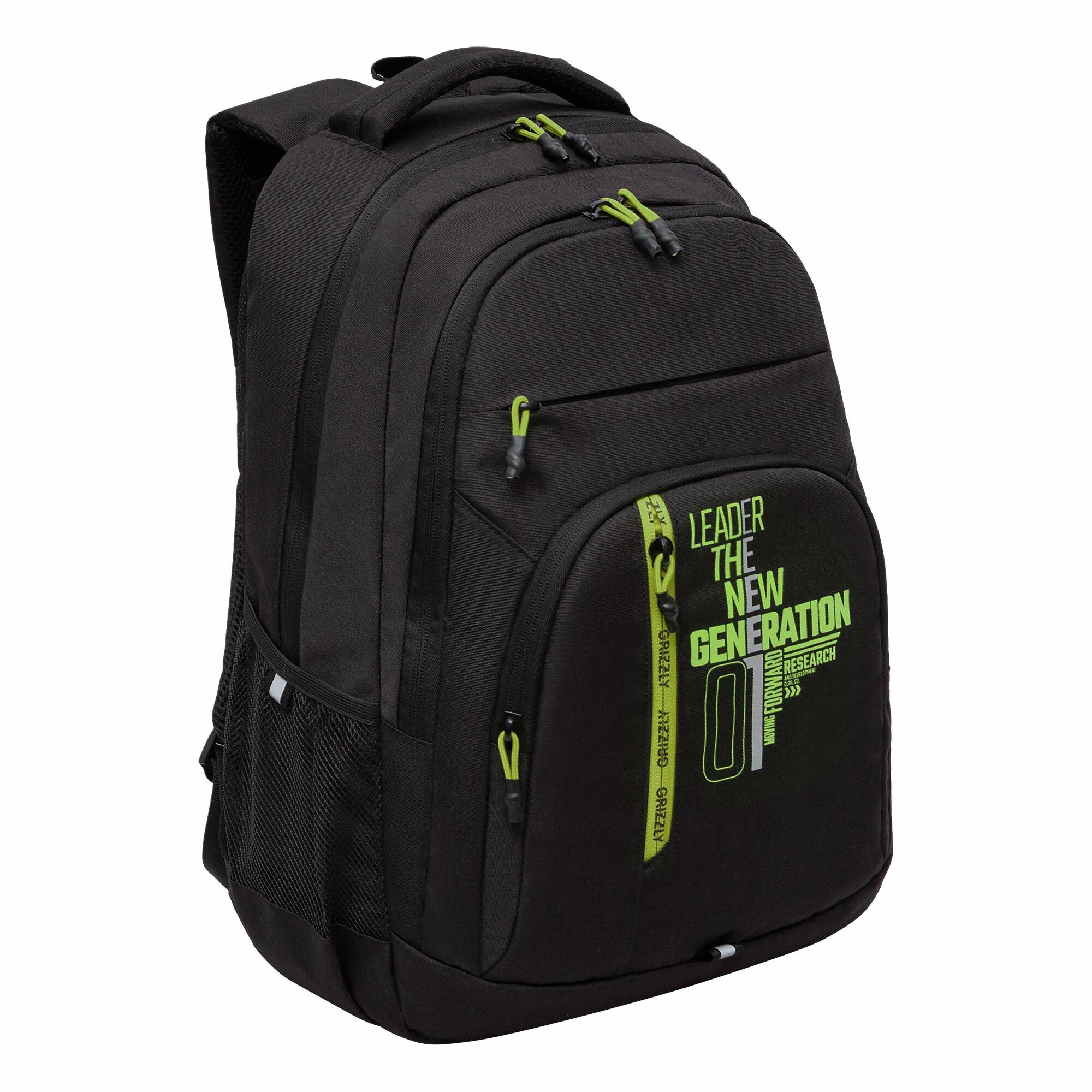 Купить Классический мужской рюкзак GRIZZLY RU-436-2 с анатомической спинкой, для мальчика, мужской, черный-салатовый