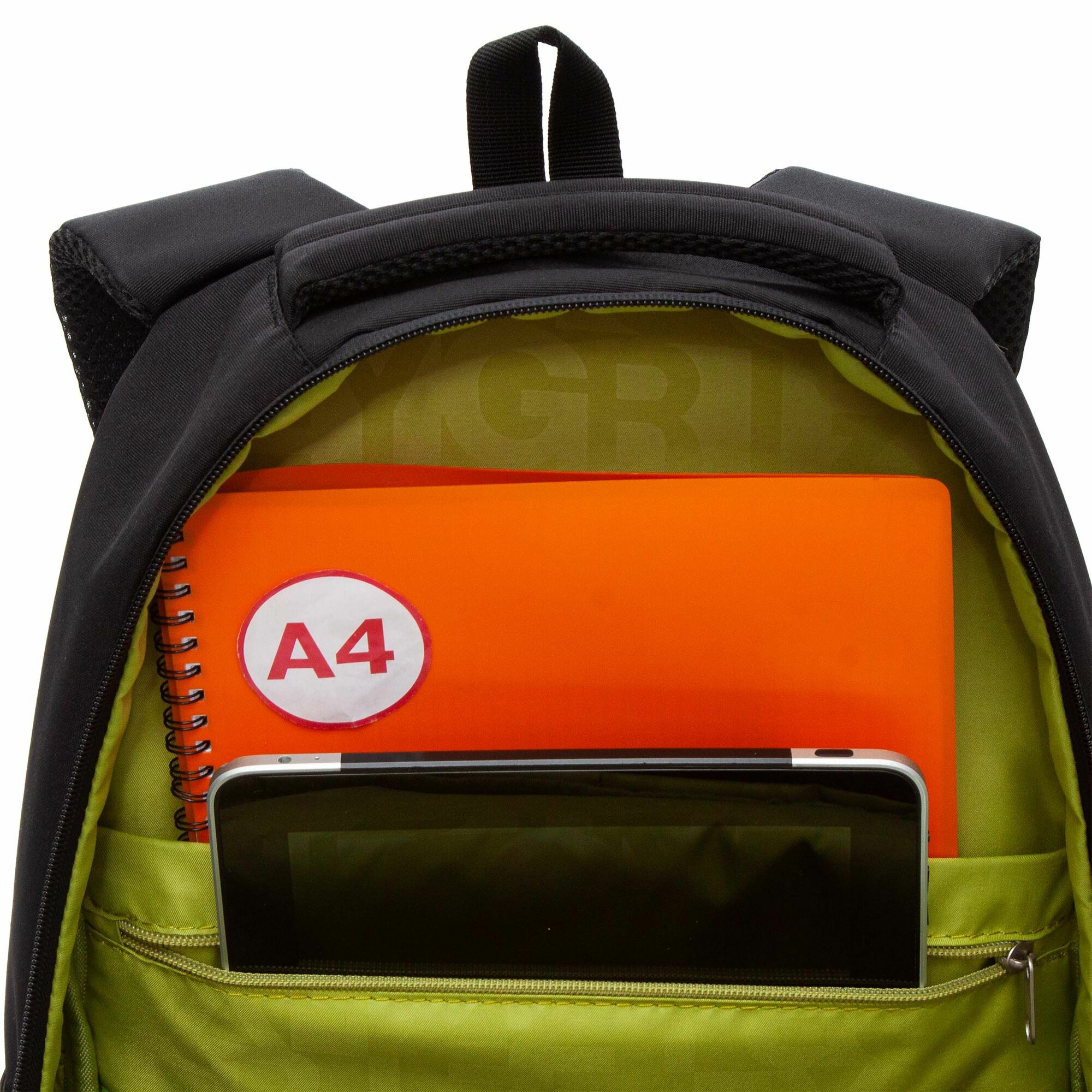 Школьный рюкзак GRIZZLY RU-434-3 черный-салатовый, 29х41,5х18