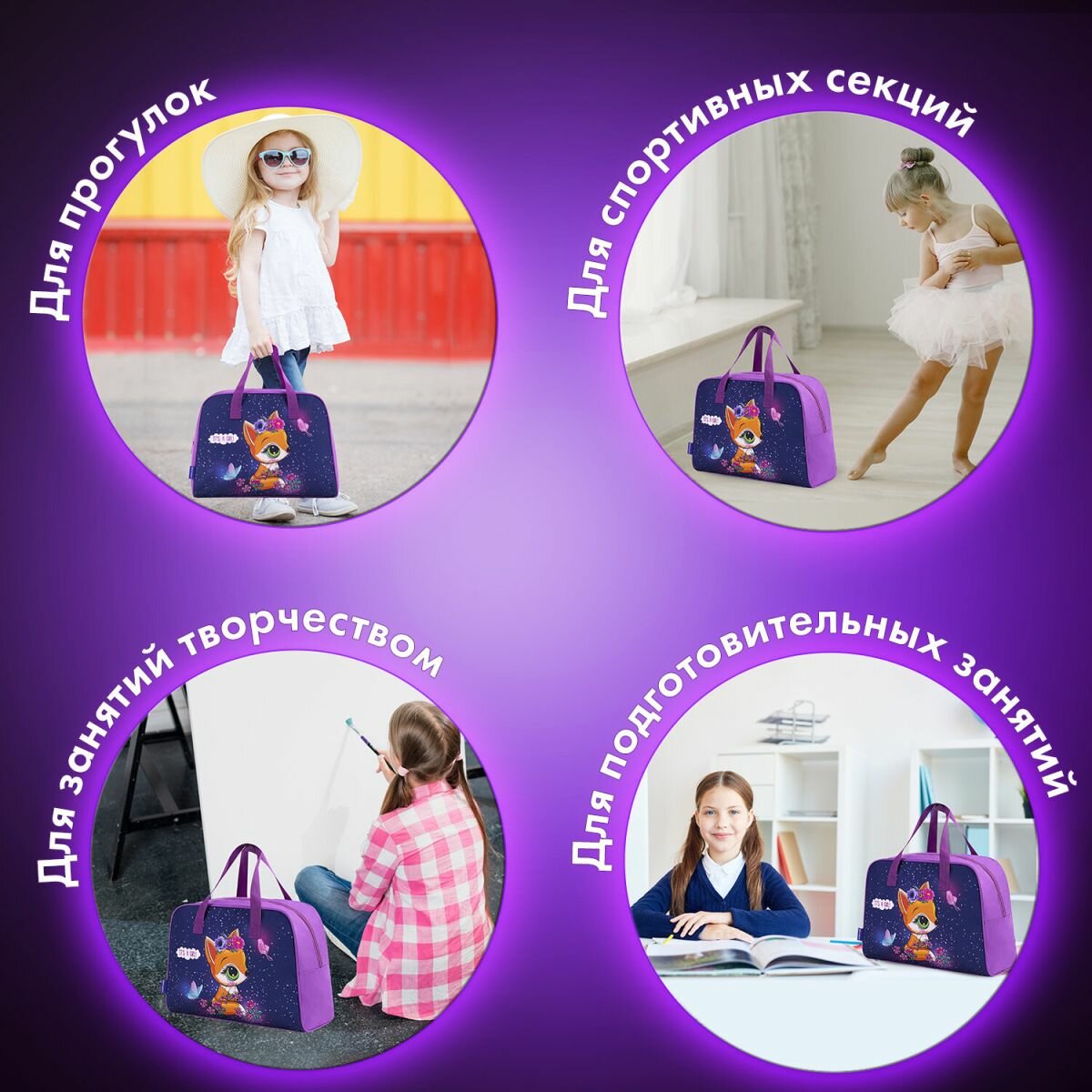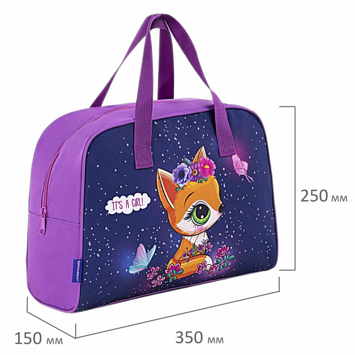 Сумка детская для ребенка девочки в бассейн, для танцев, сменки и физкультуры Brauberg с ручками, 35x25x15 см, Little fox, 271591