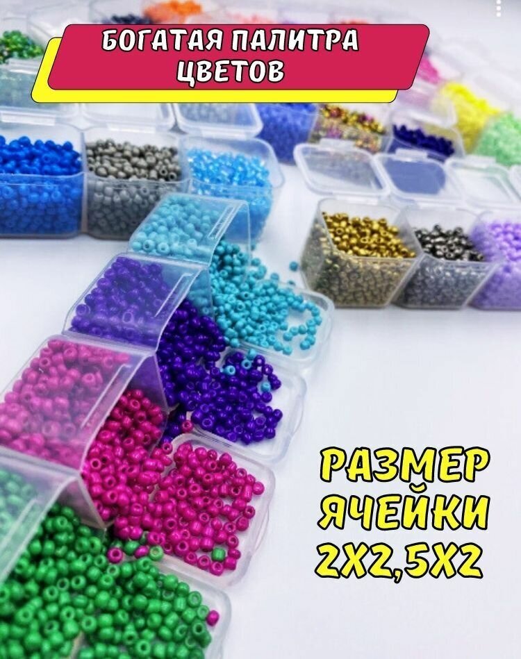 Мега набор бисера для рукоделия с леской для плетения 28 цветов, крупные бусины, буквы, застежки, органайзер, замочки. Подарок для бисероплетения украшений