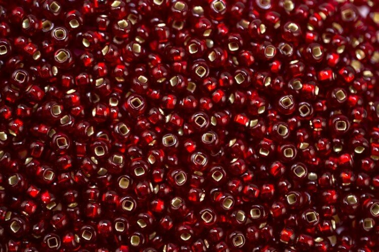 Купить Бисер чешский PRECIOSA круглый 8/0 97090 гранатовый, серебряная линия внутри, квадратное отверстие, 50г