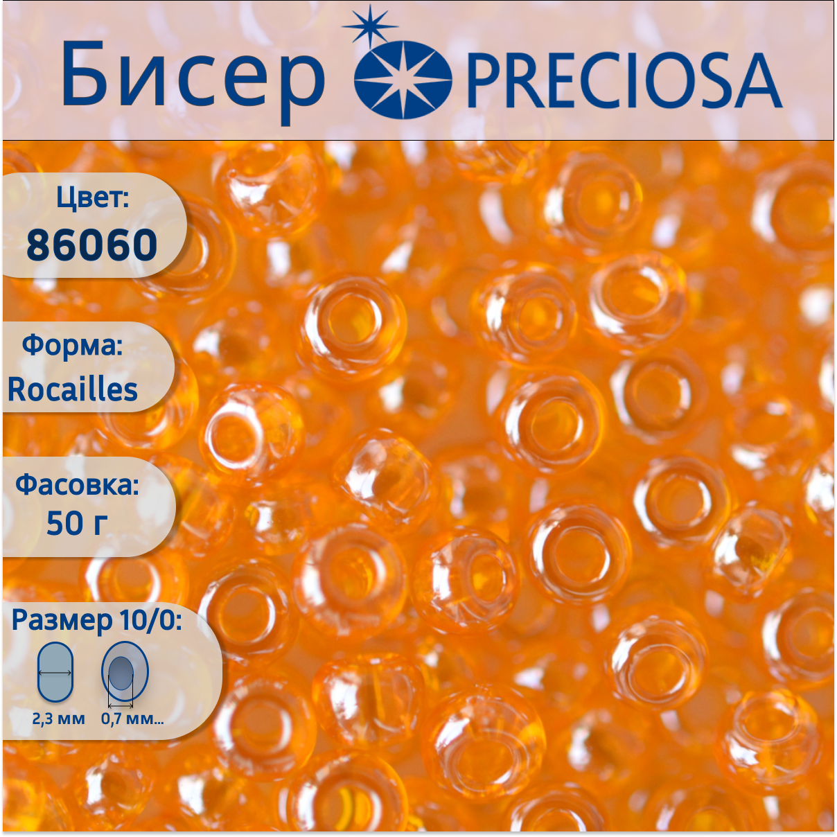 Купить Бисер Чехия Preciosa, 86060, стекло, прозрачный блестящий, 10/0, круглое отверстие, 50 г, оранжевый
