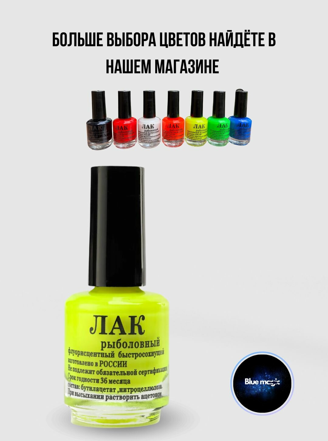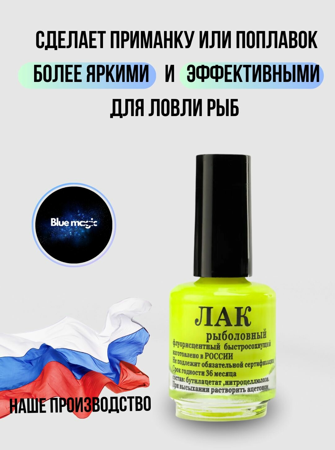 | Дополнительная информация | Лак рыболовный, флуоресцентный быстросохнущий |