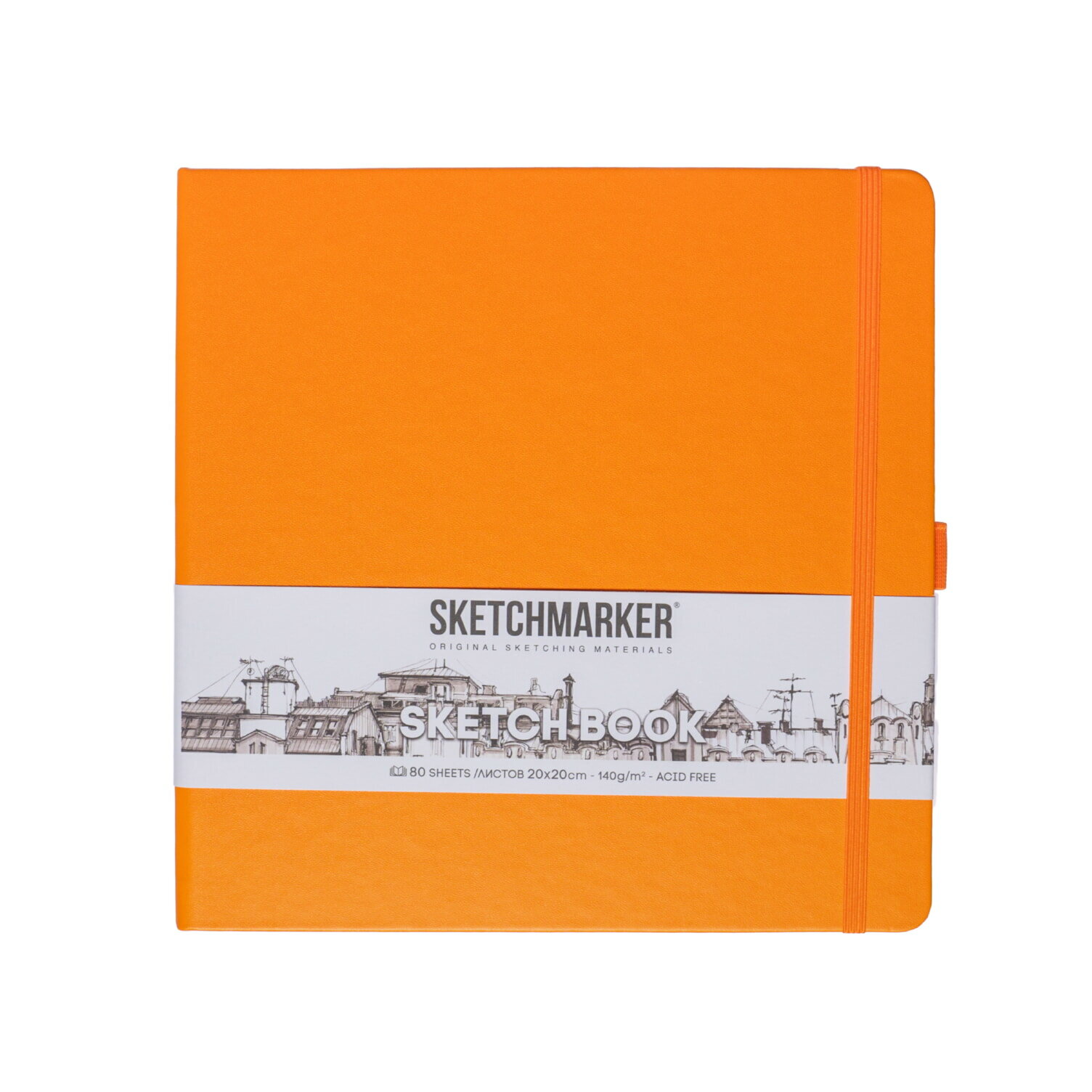 Блокнот для зарисовок Sketchmarker 140г/кв.м 20*20cм 80л (Оранжевый)