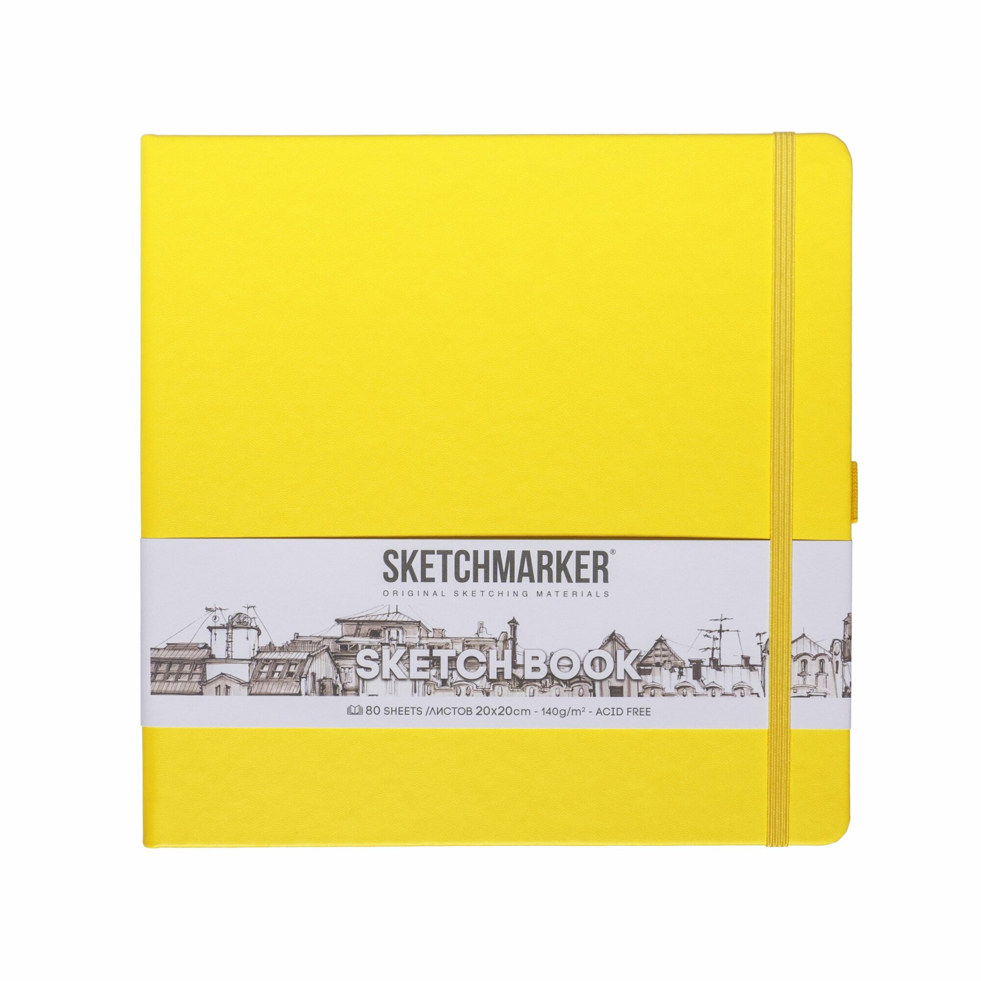Скетчбук для рисования квадратный, блокнот для скетчинга SKETCHMARKER Sketchmarker 140г/кв.м 20*20cм 80л твердая обложка, цвет Лимонный