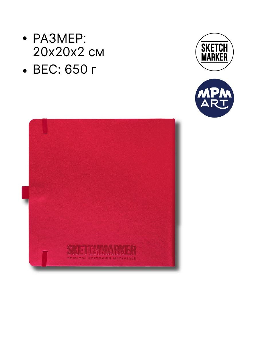 Скетчбук для рисования квадратный квадратный, блокнот для скетчинга SKETCHMARKER Sketchmarker 140г/кв.м 20*20cм 80л твердая обложка. цвет Красный