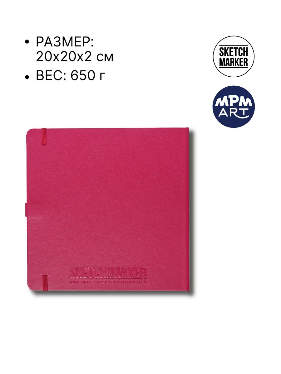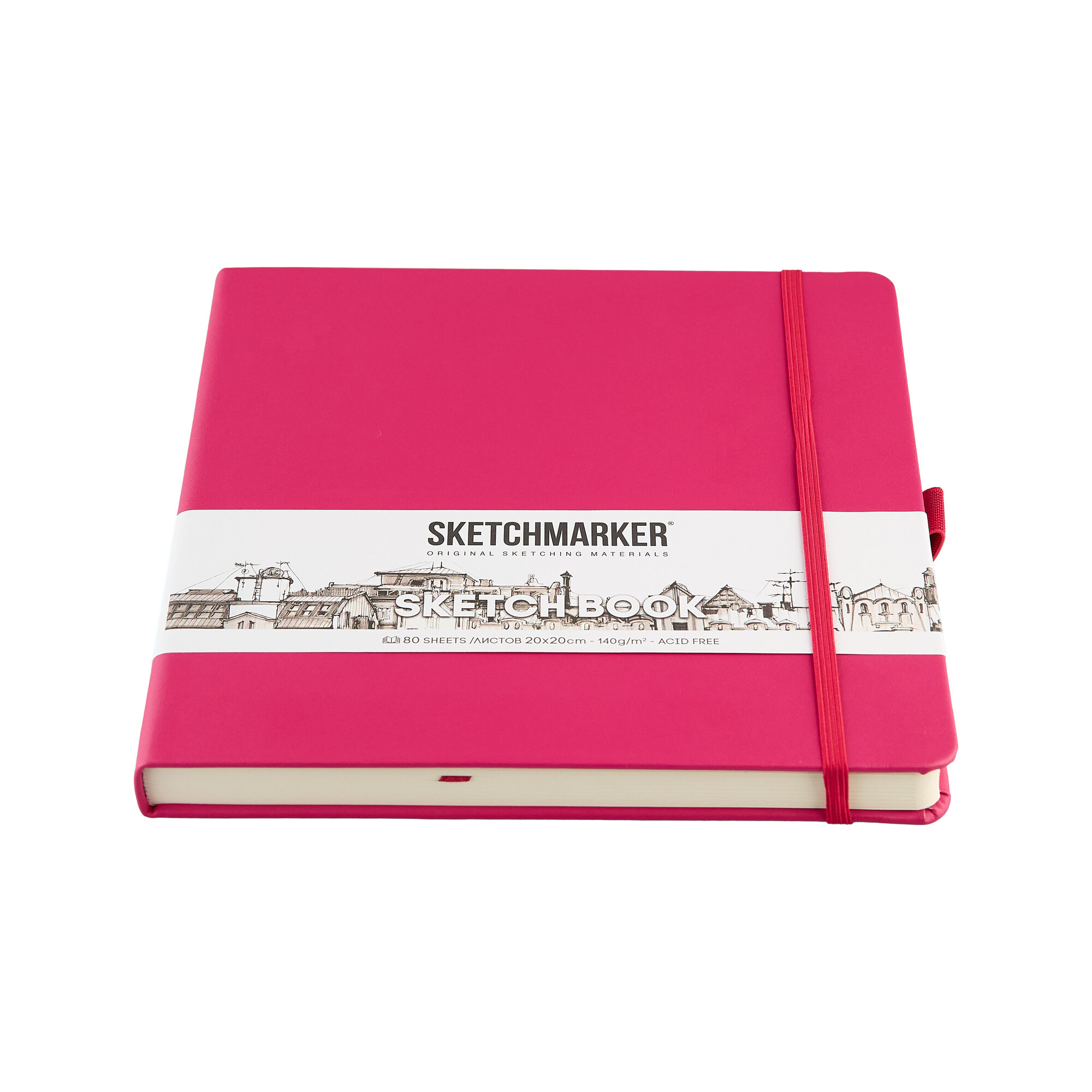 Купить Скетчбук для рисования квадратный, блокнот для скетчинга SKETCHMARKER Sketchmarker 140г/кв. м 20*20cм 80л твердая обложка, цвет Маджента