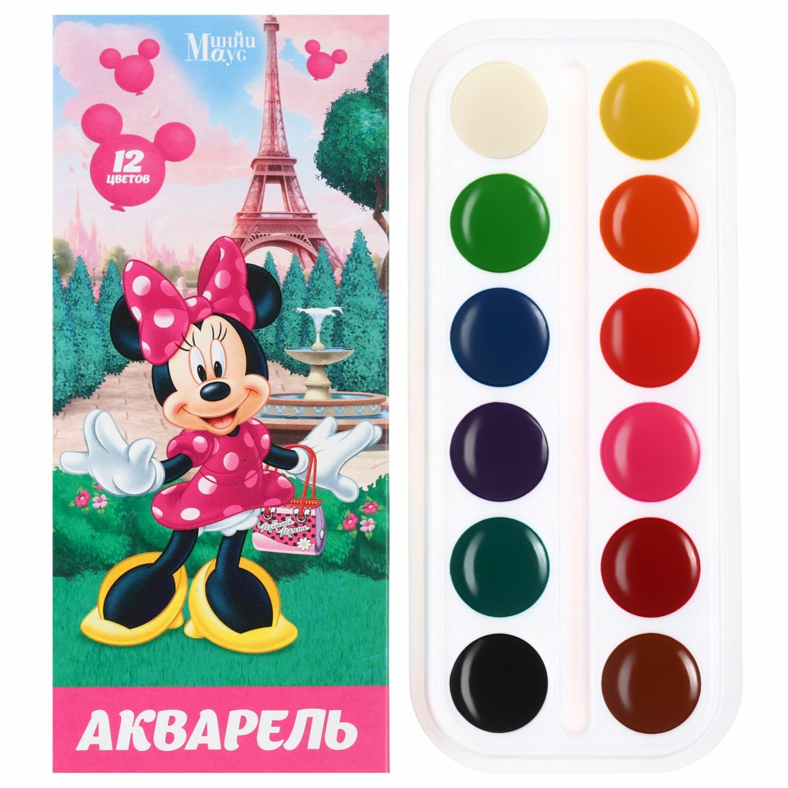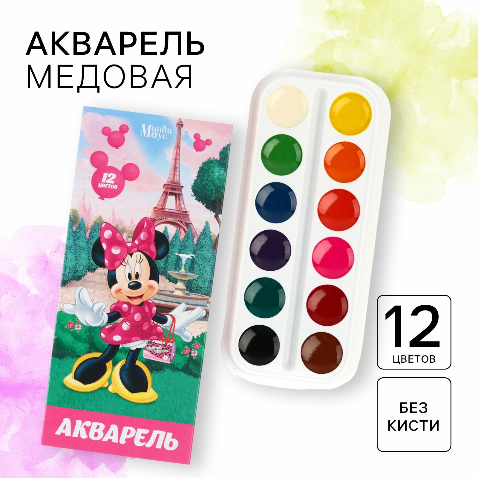 Купить Акварель медовая "Минни Маус", 12 цветов, в картонной коробке, без кисти