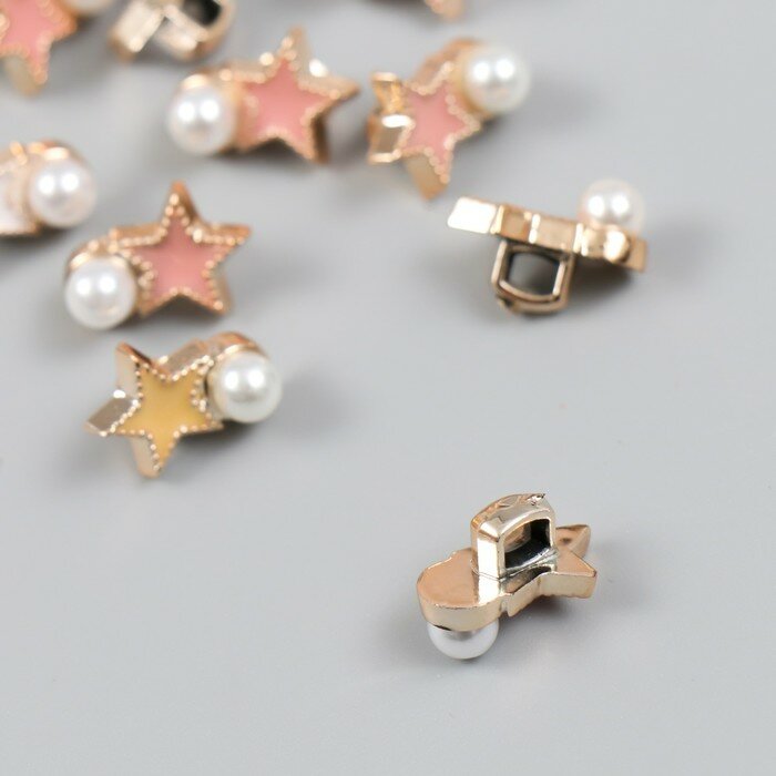 Пуговица пластик для творчества "Звезда с жемчужинкой" набор 10 шт микс 1,4х1х0,8 см 9410832