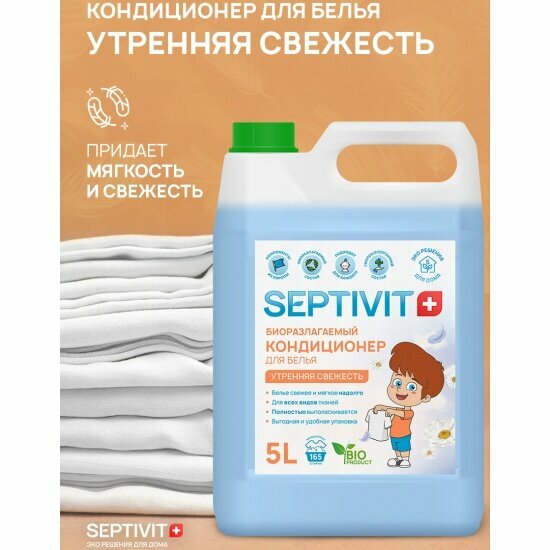 Кондиционер для белья SEPTIVIT / Ополаскиватель для белья Септивит / Кондиционер для белья детский, / Утренняя свежесть, 5 литров (5000 мл.)