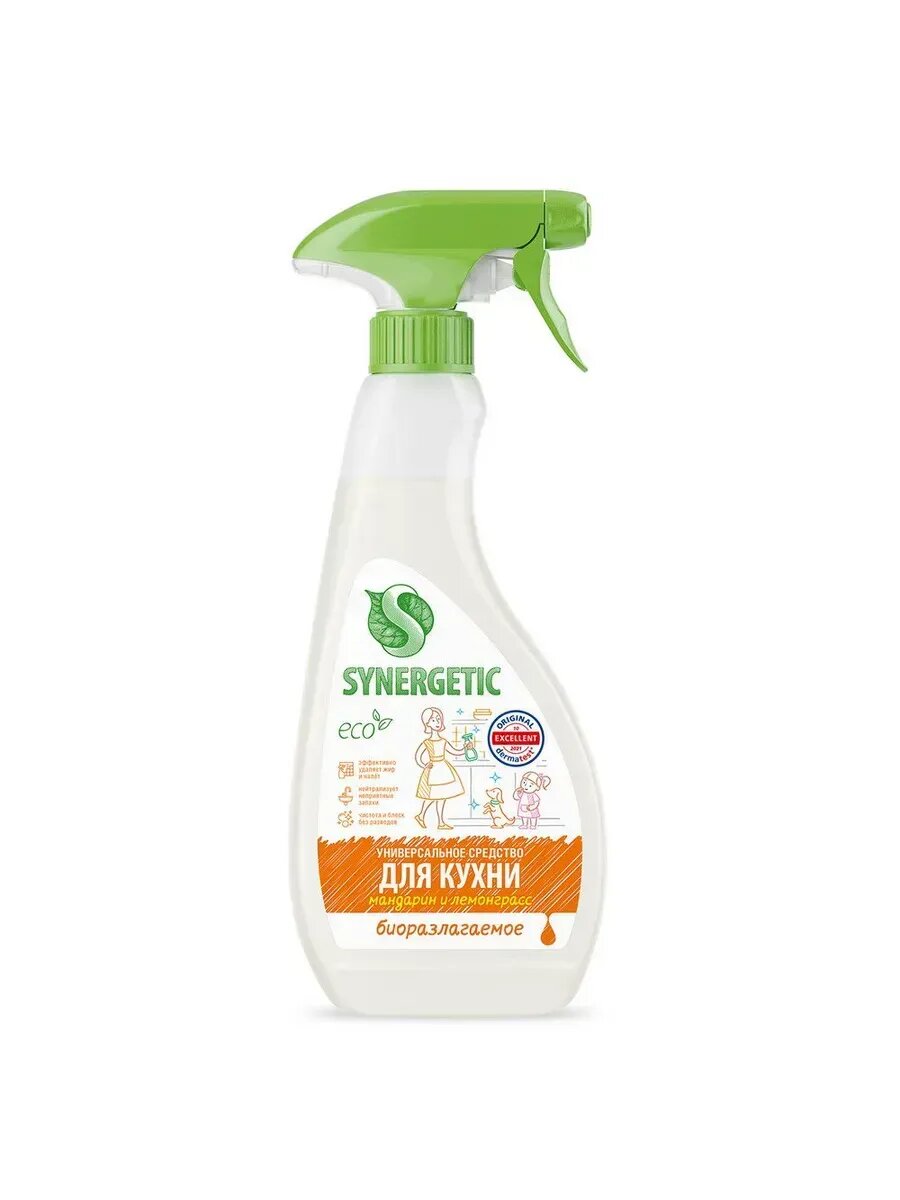 Чистящий спрей Synergetic Мандарин и лемонграсс, для кухни, универсальный, 500 мл