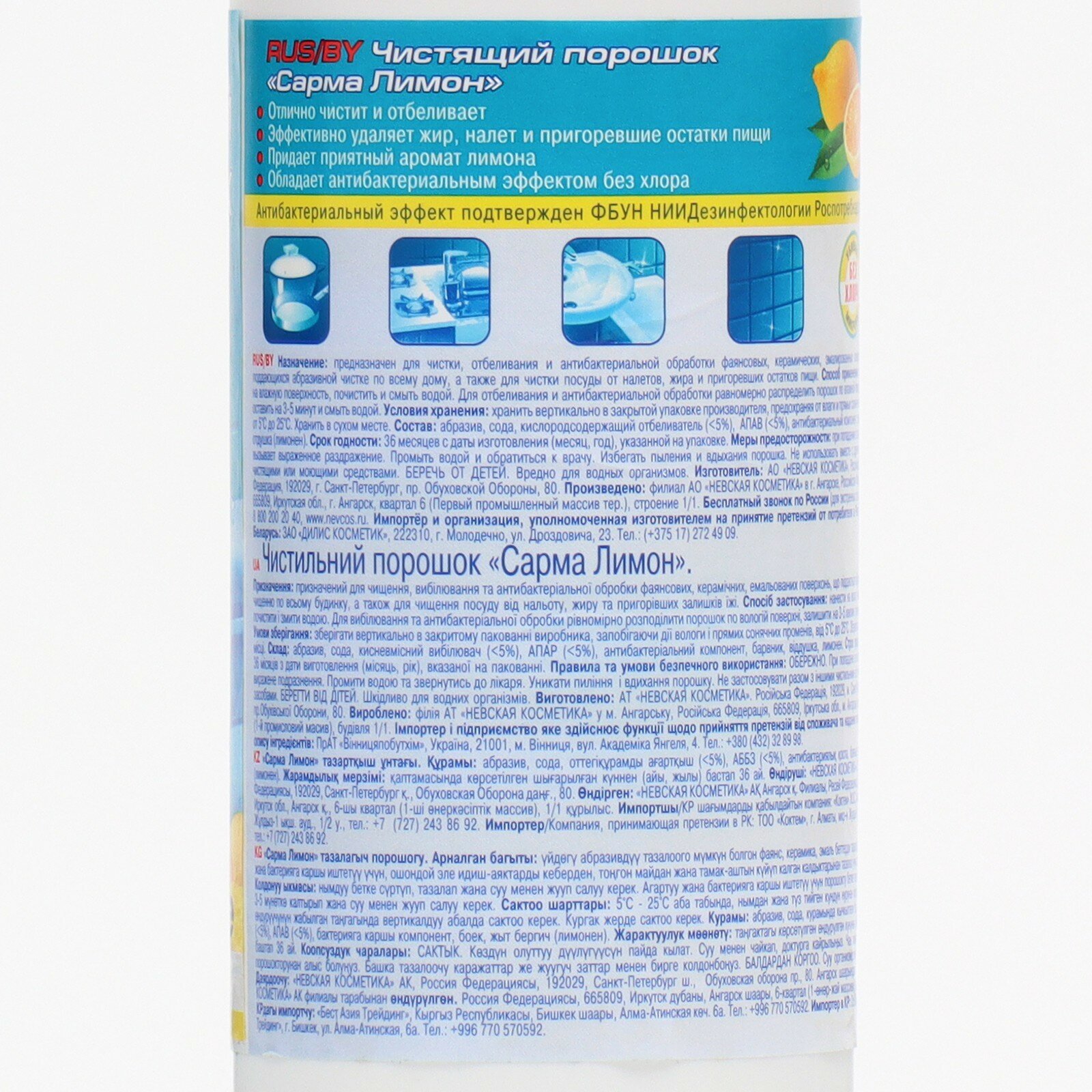 Ниже Вы можете прочитать отзывы на Чистящий порошок Sarma Лимон, с антибактериальным эффектом, 400 г, ознакомится с подробными характеристиками, посмотреть интересные обзоры и фотографии на Чистящий порошок Sarma Лимон, с антибактериальным эффектом, 400 г.