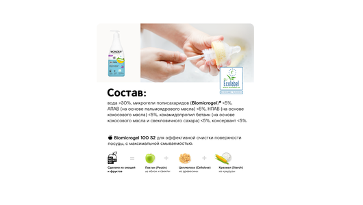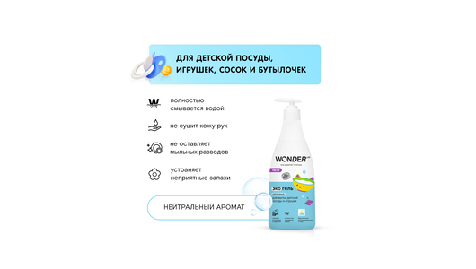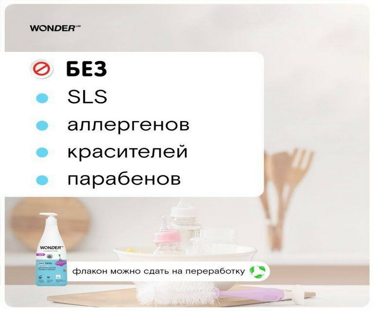 WonderLab Экогель для Детской Посуды (нейтральный) {с дозатором} 0,55 л интересное: