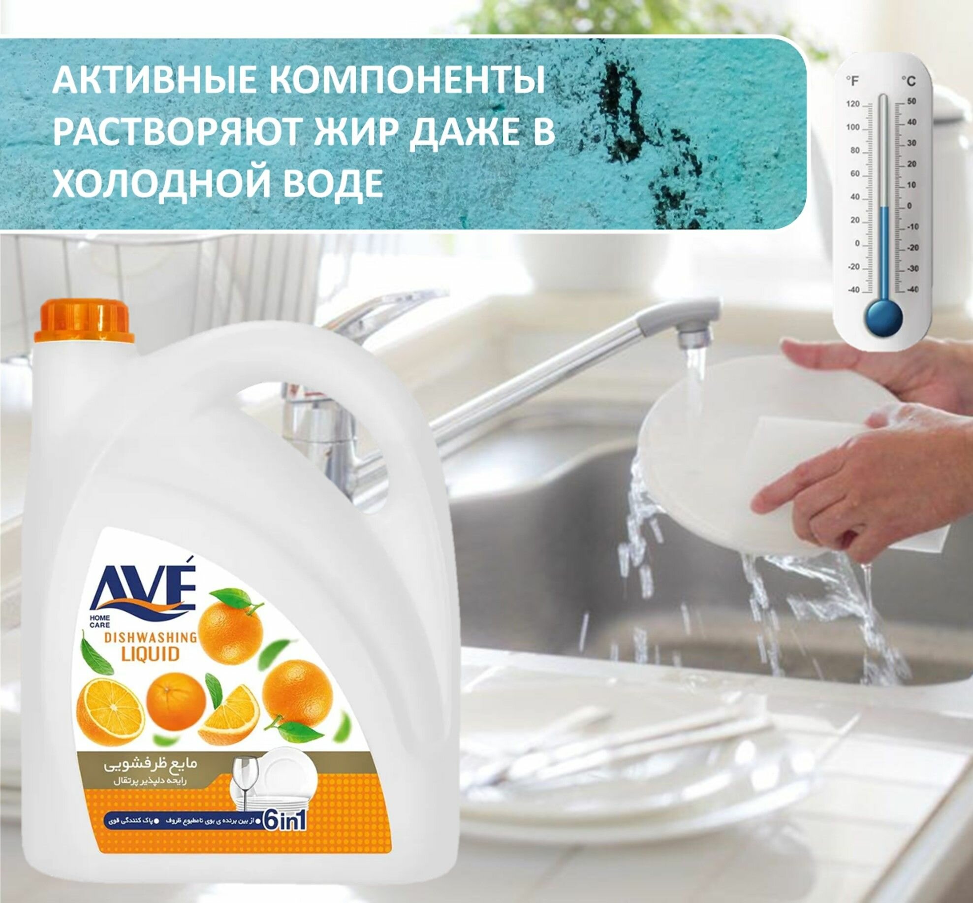 Купить AVE Cредство для мытья посуды, концентрированное, Апельсин 3,75л