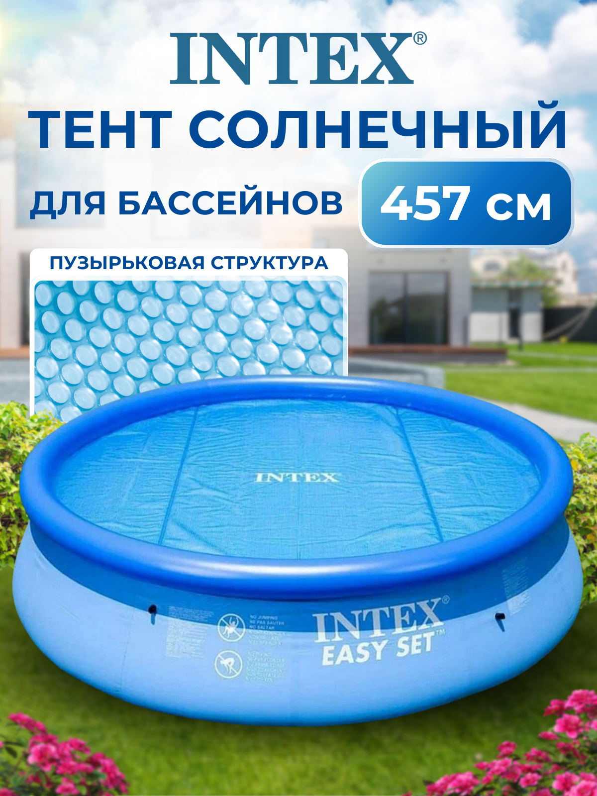 Солнечный плавающий тент покрывало Intex для круглых каркасных и надувных бассейнов 448 см интересное:
