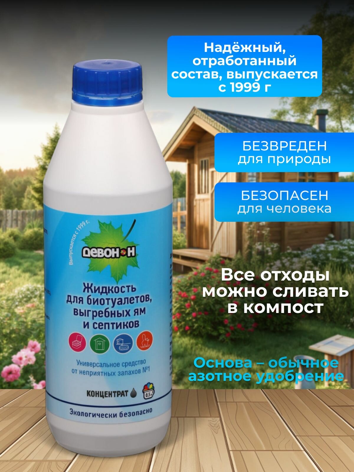 Жидкость для биотуалетов, выгребных ям и септиков "Девон-Н" 0,5 л, концентрат интересное:
