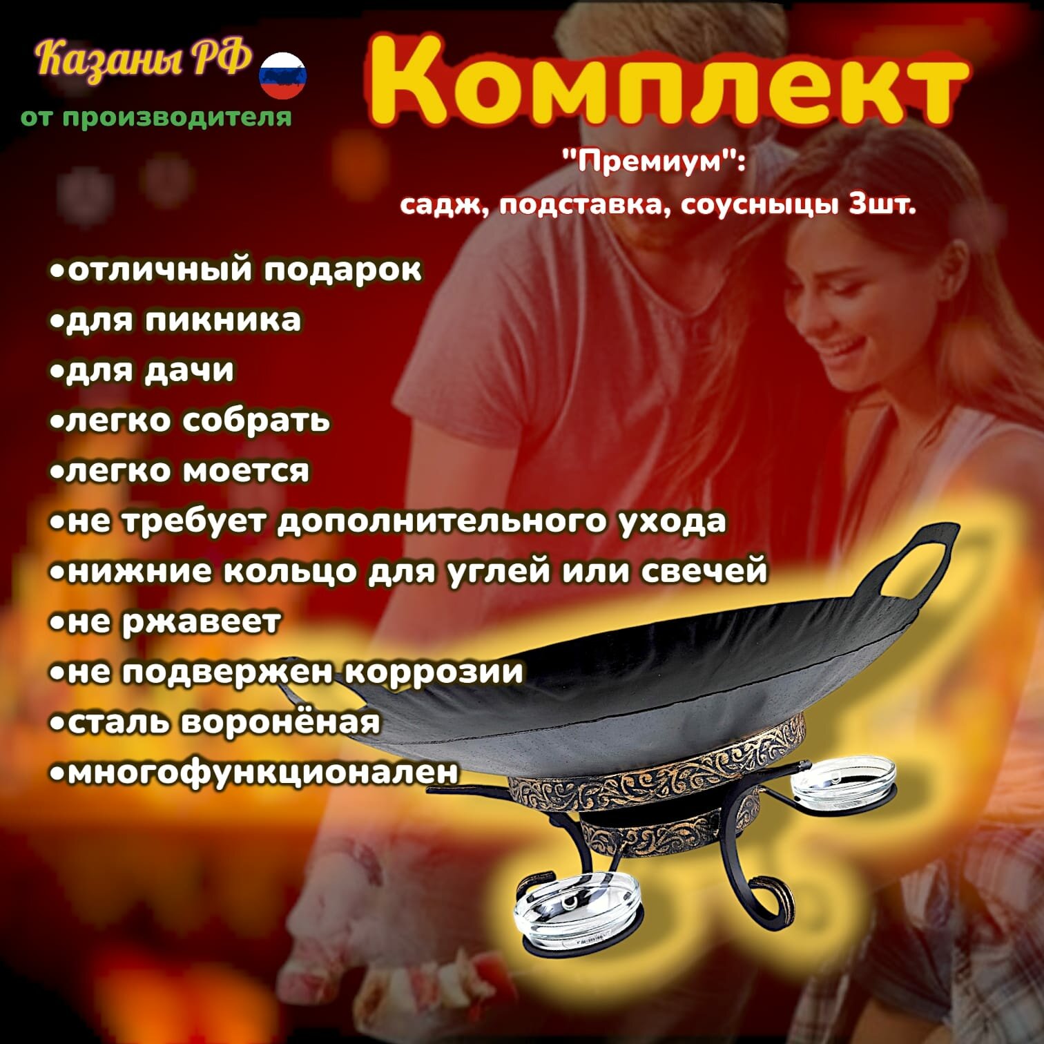 Подставка под садж Премиум+садж 40см+крышка40см Казаны РФ вороненый комплект интересное: