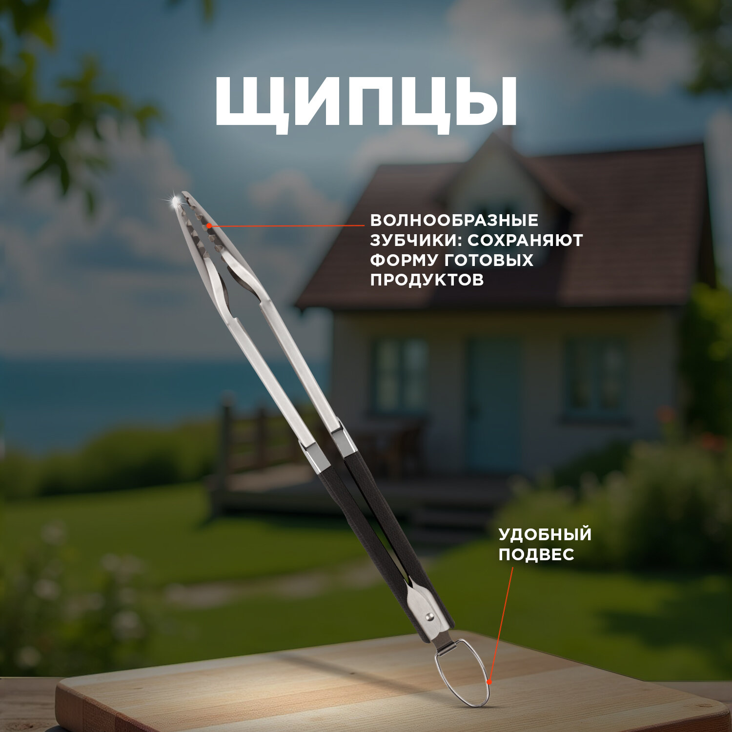 СохранитьНабор для гриля, барбекю, мангала из нержавеющей стали с термопластичной резиновой рукояткой, щипцы + лопатка СОКОЛ интересное: