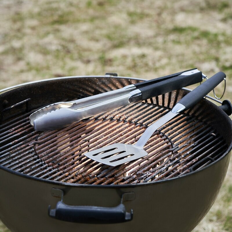 Набор для гриля, барбекю, мангала из нержавеющей стали с термопластичной резиновой рукояткой вебер, щипцы + лопатка