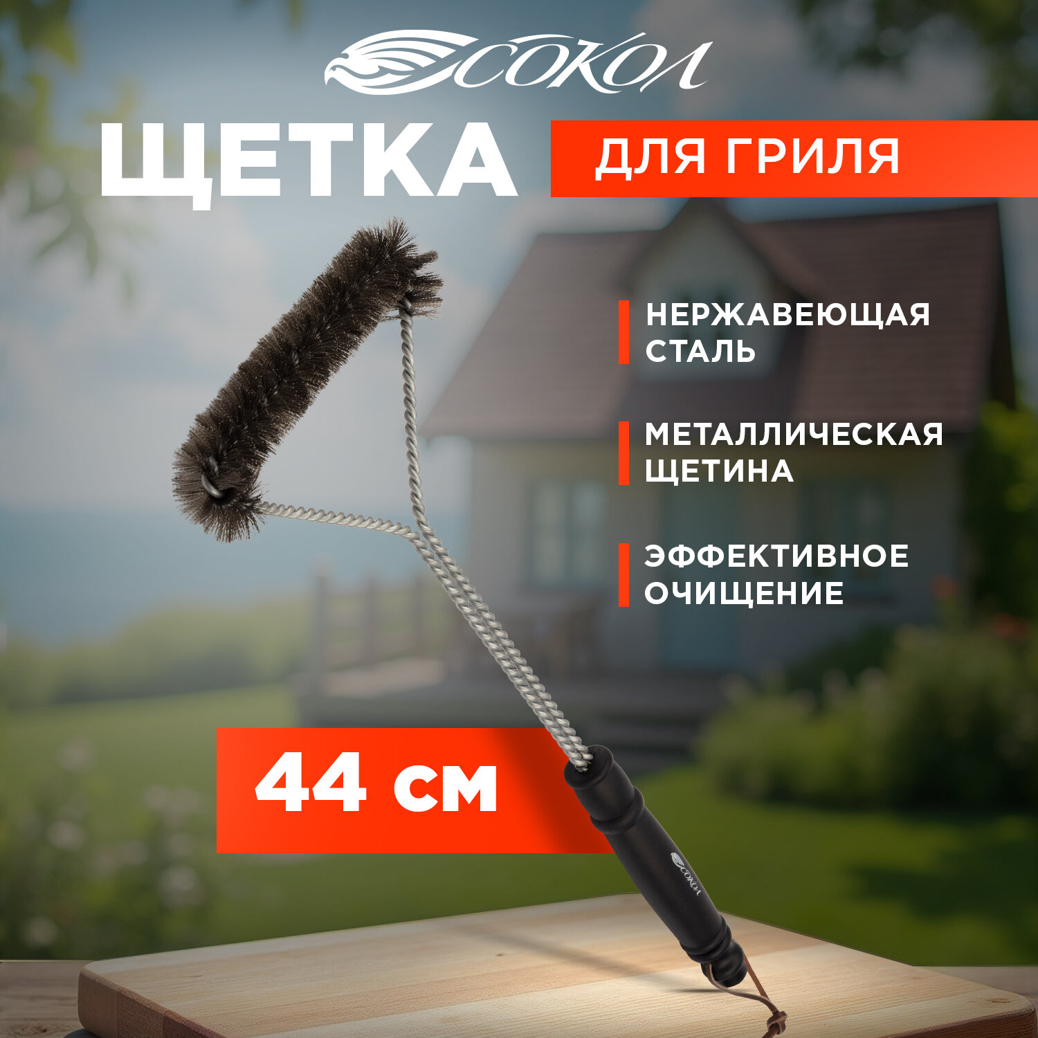Купить Щетка для гриля, мангала, барбекю вебер сокол из нержавеющей стали с термопластичной резиновой рукояткой, аналог вебер, 44 см