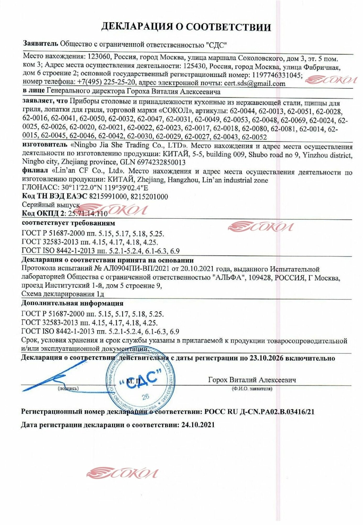 | Бренд | Сокол |