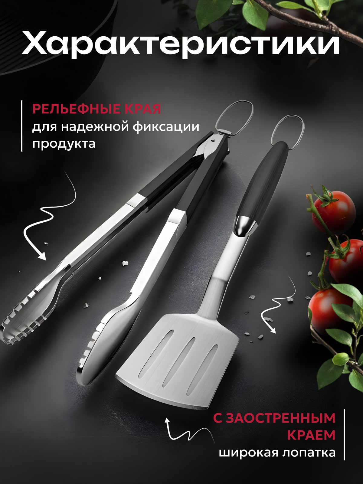 | Комплектация | Щипцы для гриля-1 шт, Лопатка для барбекю-1 шт |
