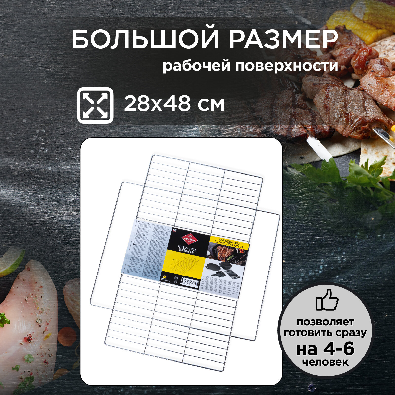 Решетка для гриля на мангал подставка FORESTER, большой размер 24х48 см интересное: