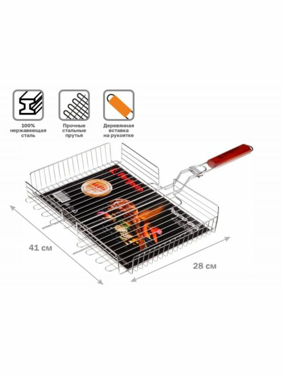 Решетка-гриль, 280x220 мм, нержавеющая сталь, деревянная ручка, PERFECTO LINEA (Изготовлена из 100% нержавеющей стали. Гигиенична, безопасна, долгове