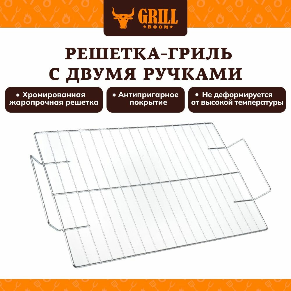 Купить Решетка-гриль GRILLBOOM с двумя ручками, 41х24см, решетка для гриля, шашлыка, барбекю, сетка на мангал