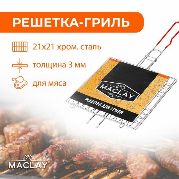 Решётка-гриль Maclay, универсальная, хромированная сталь, 46x21 см, рабочая поверхность 21x21 см