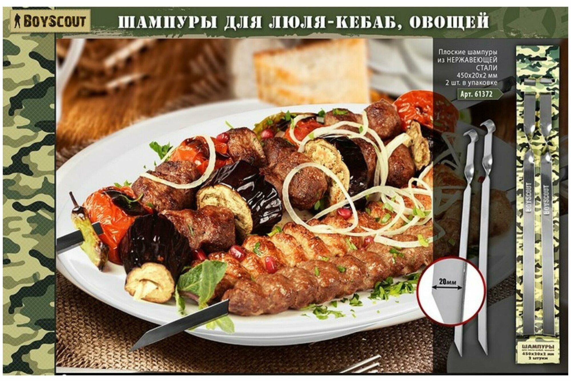 Шампуры для люля-кебаб, овощей 450х20х2 мм из нержавеющей стали, 2 шт в упаковке, BOYSCOUT интересное: