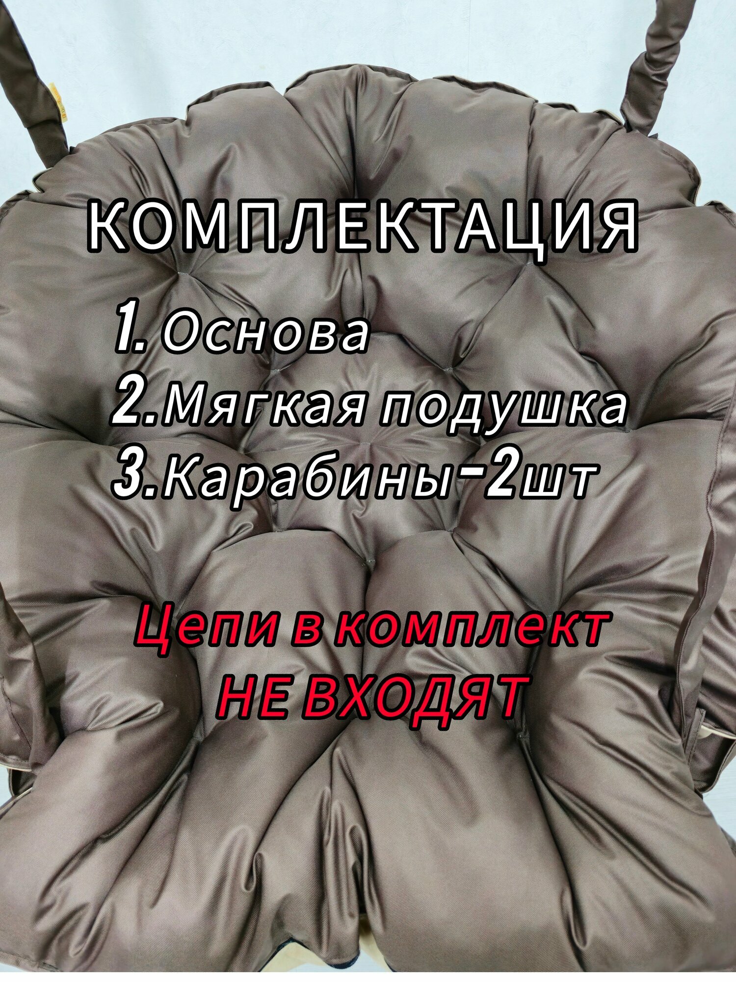 | Комплектация | Основа качели в собранном виде -1шт, матрас -1шт, цепь 50см-1шт(размер цепи предназначен для стандартного потолка 2,5-2,7м) , пожарный карабин -2шт |