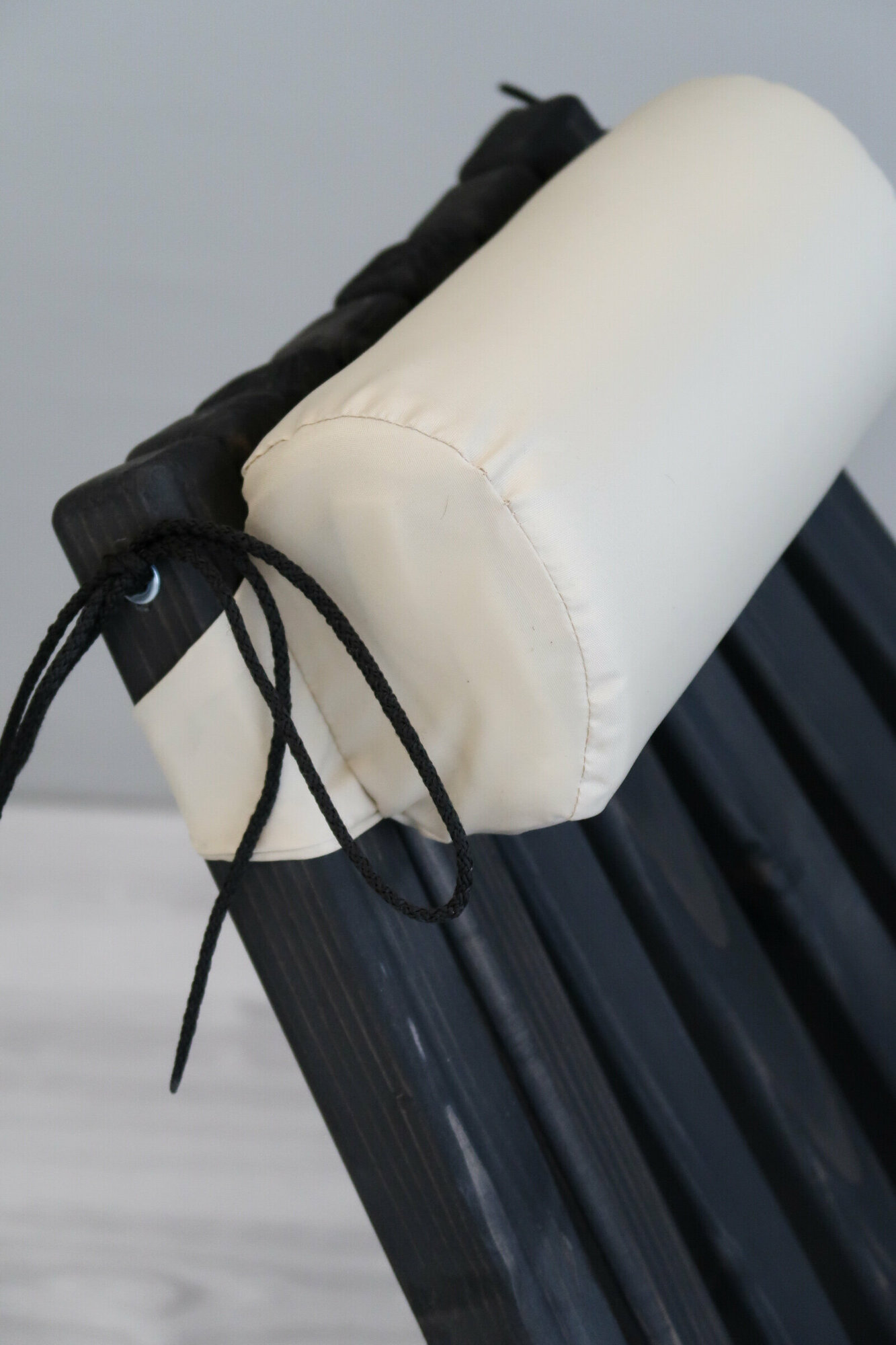 Садовое кресло шезлонг складное с бежевой подушкой из массива ели. интересное: