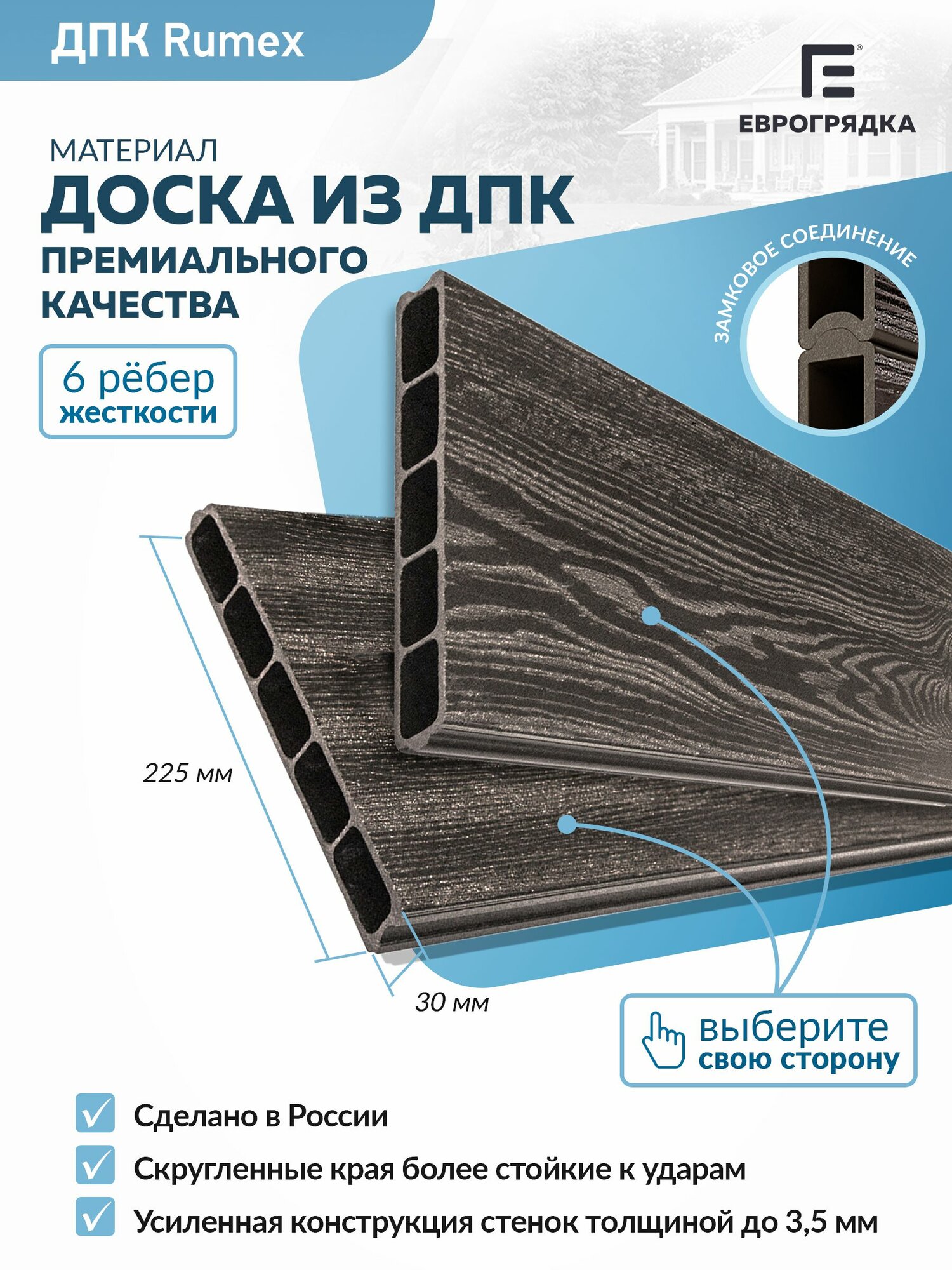 Грядка из ДПК 1.5 м x 0.5 м, (доска Rumex: 225х30 мм, цвет: графит)