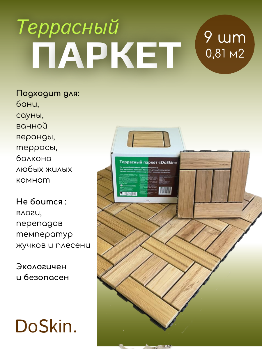 Модульный паркет DoSkin термсосна 9шт (0,81 м2 ) для сада/бани/бассейна/балкона
