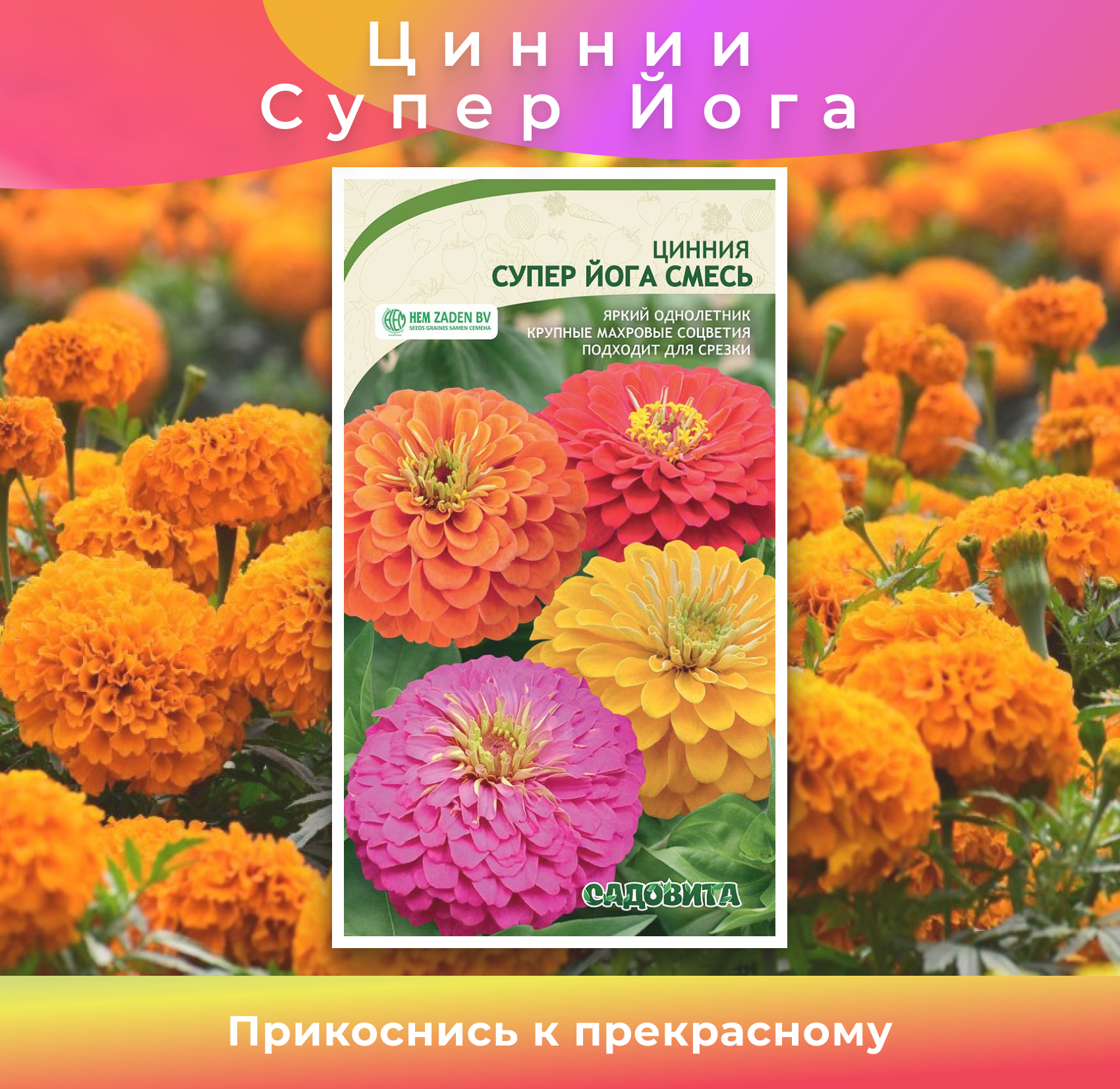 Семена "Супер йога" цинии, однолетние, гибрид, махровые соцветия интересное: