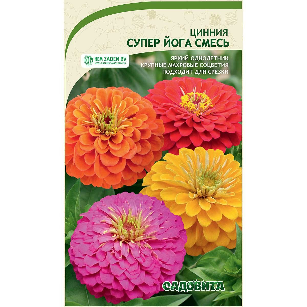 Купить Семена "Супер йога" цинии, однолетние, гибрид, махровые соцветия