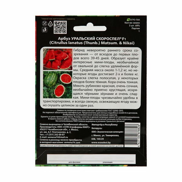 Семена Арбуз "Уральский Скороспел", F1, 3 шт, 1 упак.