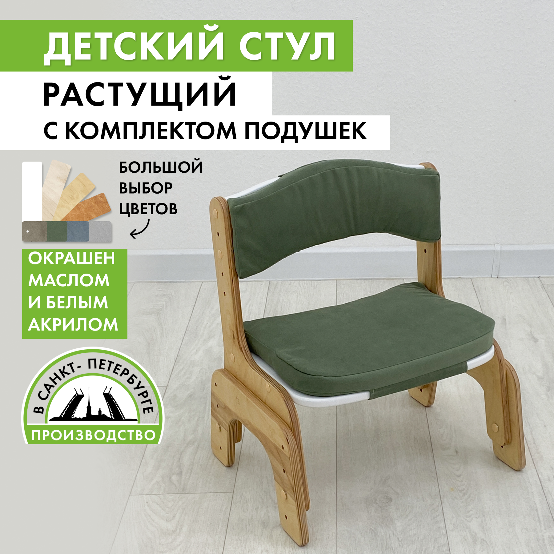 Детский стульчик Малышок, без покрытия, подушки хаки