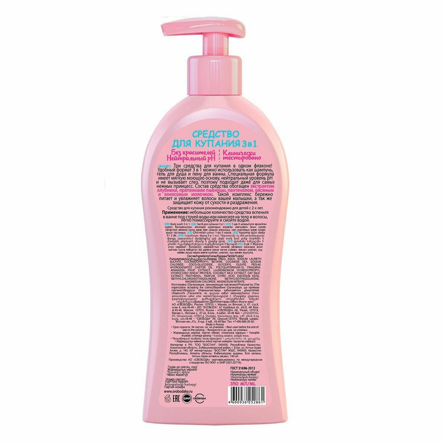 Свобода Средство для купания детское, Алиса, 3 в 1 с экстрактом клубники и молочком кокоса 350 мл /