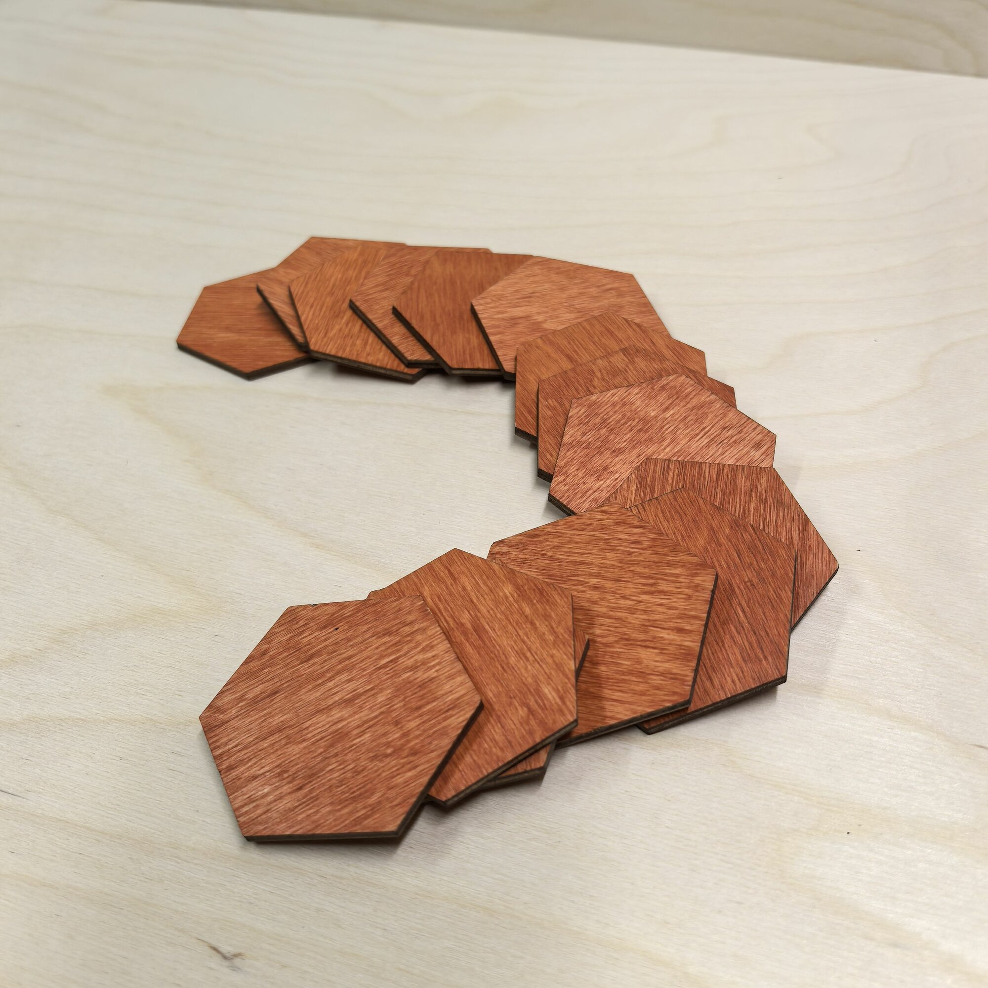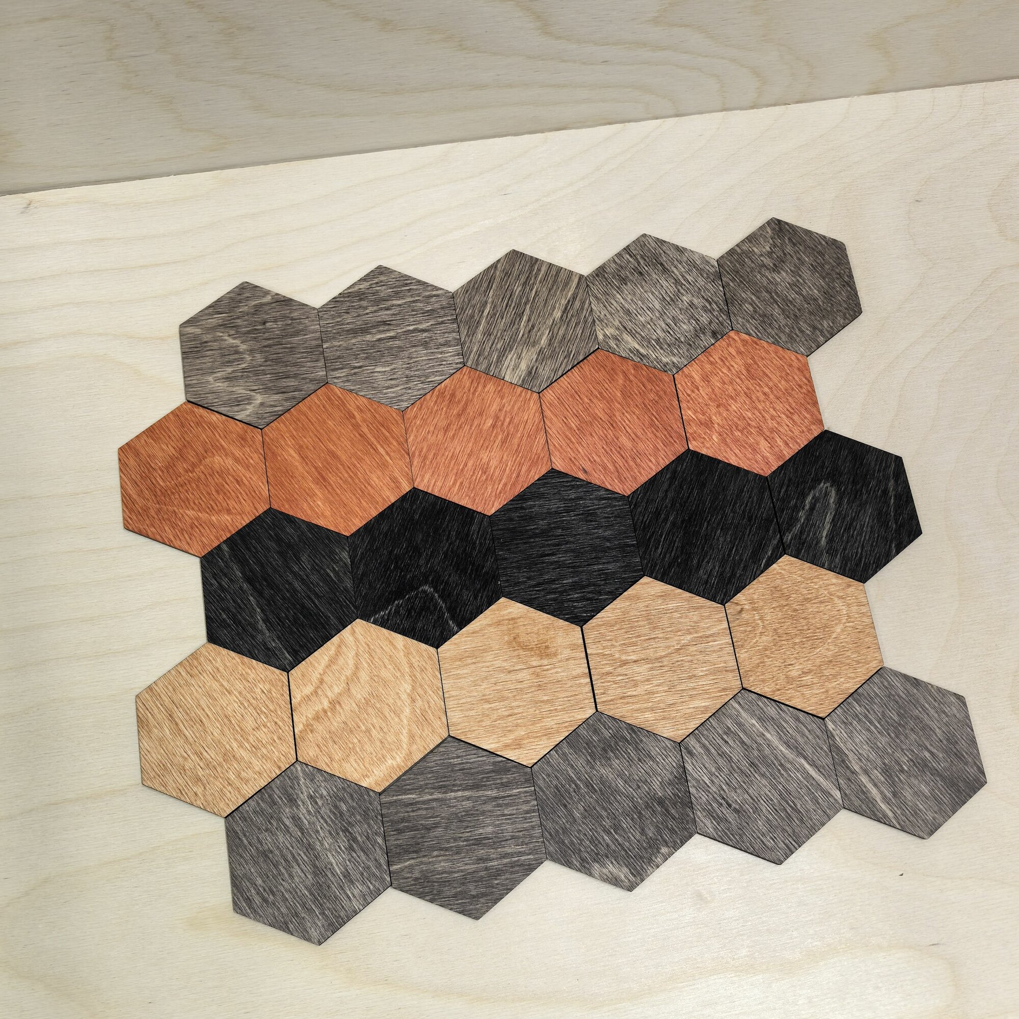 Купить Декоративная плитка Bezusoff "Соты", 50x57x3 мм, фанера, покрытие маслом, махагон, 120 штук