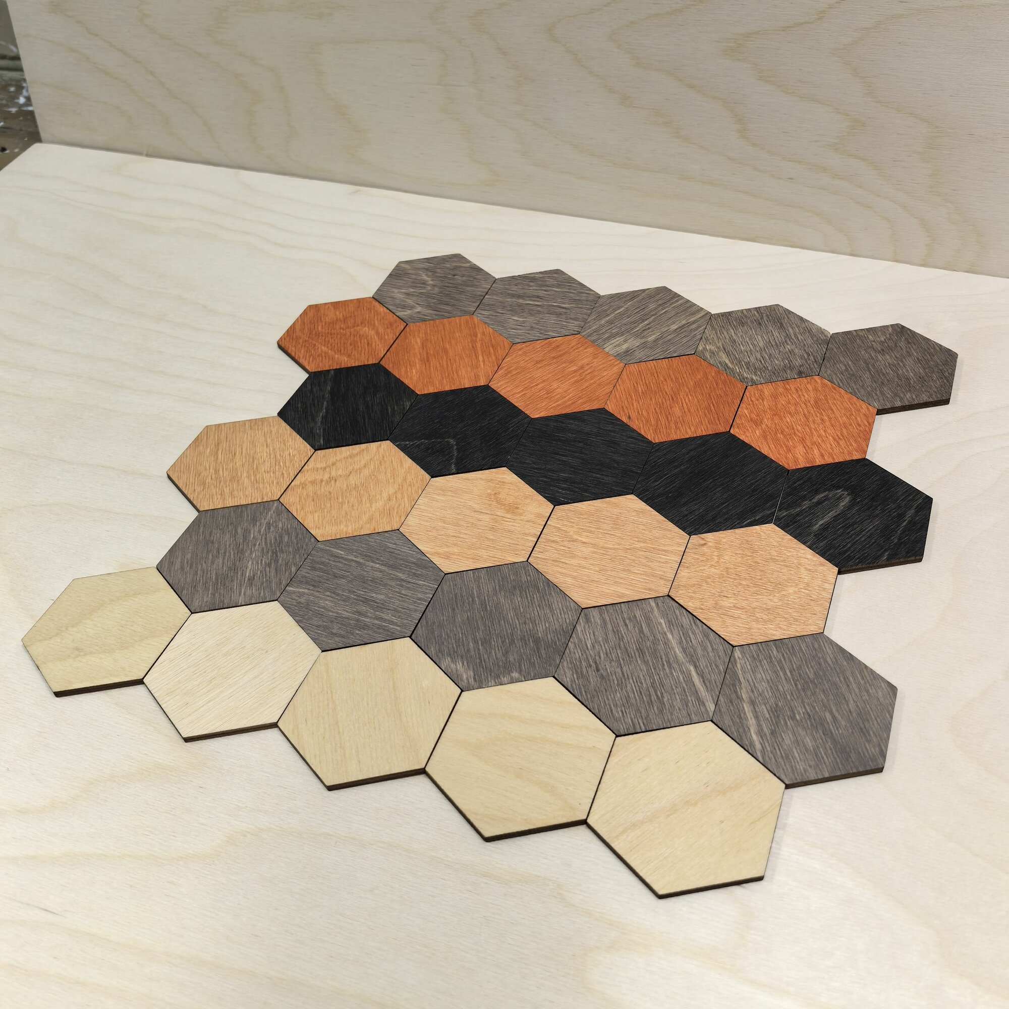 Декоративная плитка Bezusoff "Соты", 50x57x3 мм, фанера, покрытие маслом, махагон, 120 штук