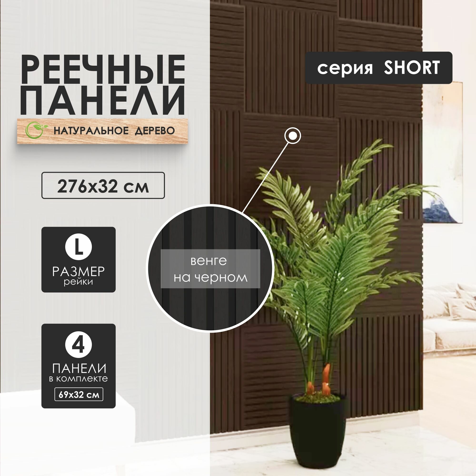Купить Стеновые панели реечные Венге на черном, натуральное дерево, рейки декоративные на стену 690х320 4 шт 0,9 кв. м WOODWS