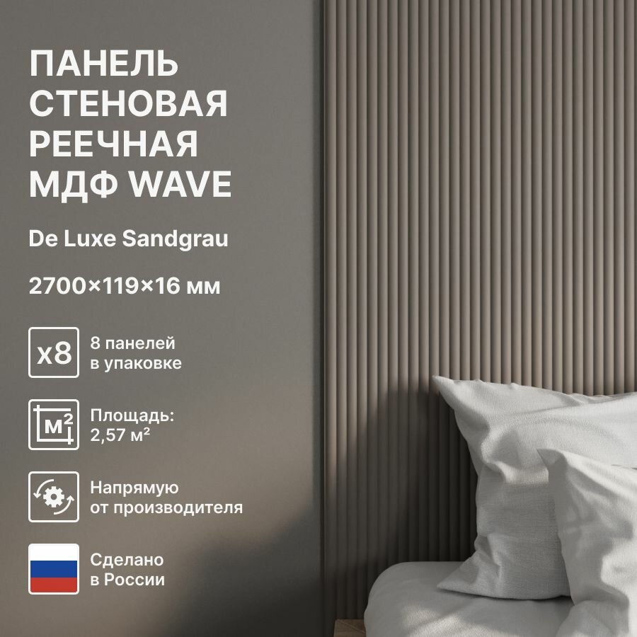 Панель Стеновая Реечная МДФ Wave De Luxe Sandgrau 2700х119х16 (упаковка 16 штук)