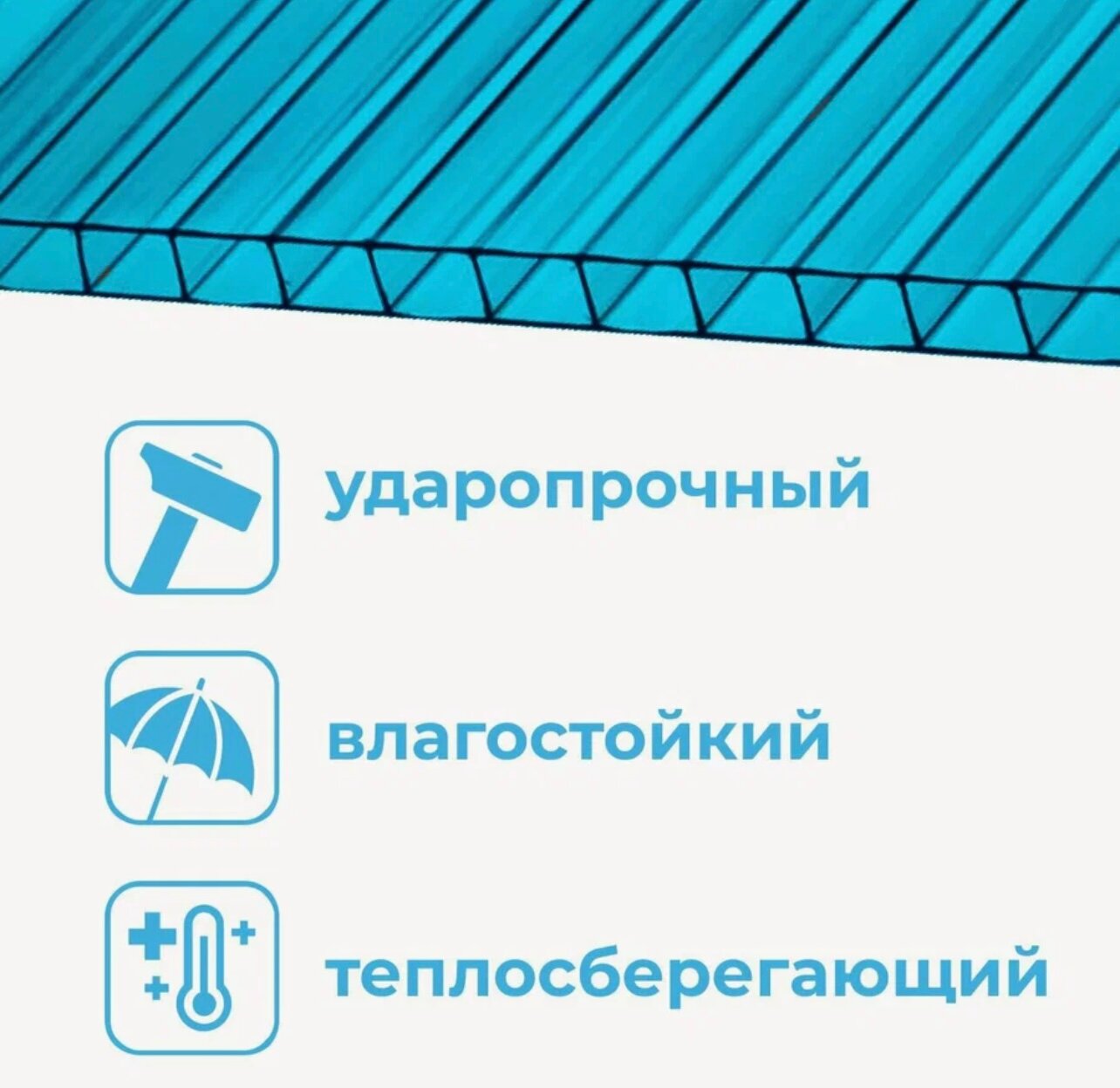 6 мм синий сотовый поликарбонат Woggel гарантия 20 лет, длина 6 метров