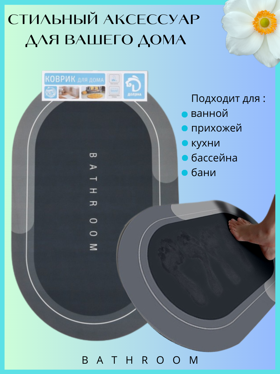СохранитьКоврик для ванной и туалета противоскользящий 50*80см, темно-серый, овальный интересное: