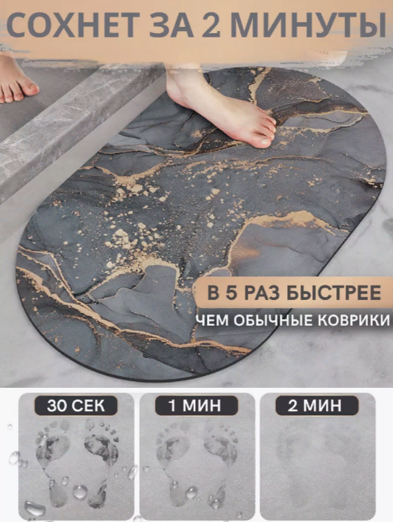 СохранитьКоврик для ванной и туалета противоскользящий, быстросохнущий 50*80см, Серый мрамор интересное: